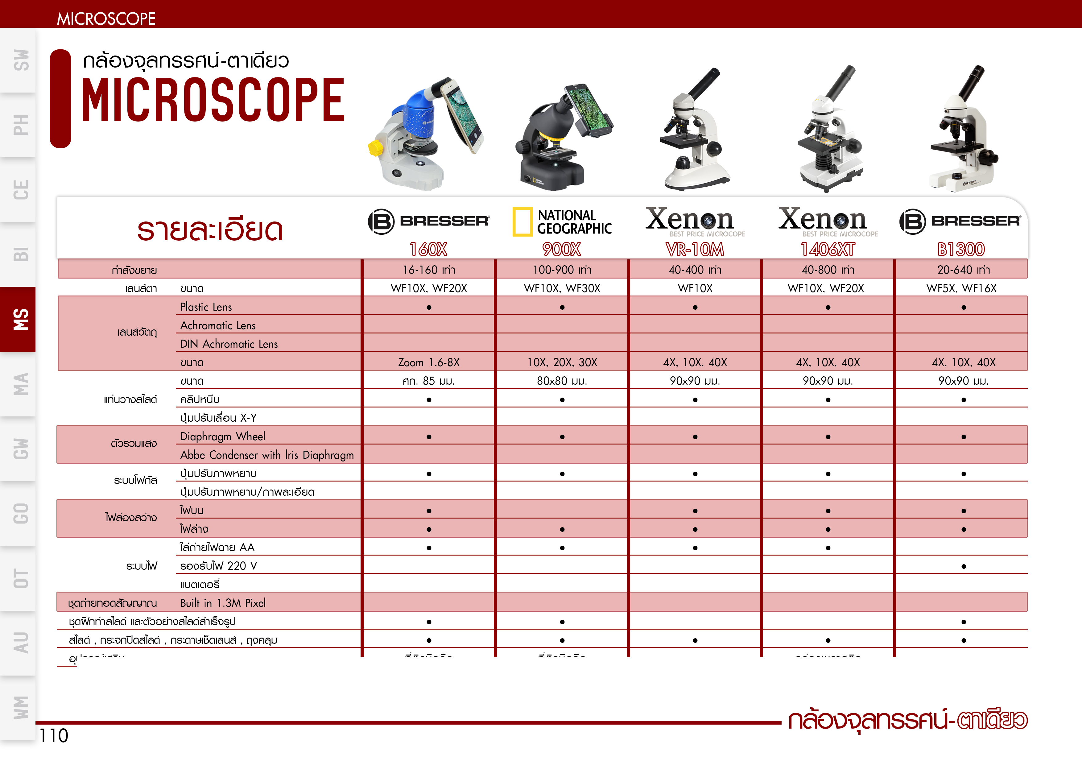| ม่านไดอะเฟรม | Abbe Condenser + Iris Diaphragm |